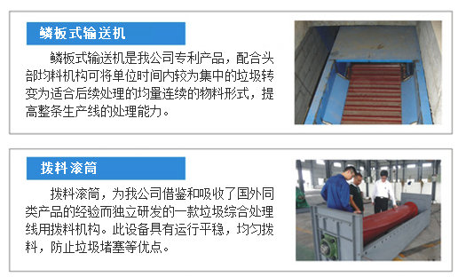 送料機構作為生活垃圾處理線的第一道工序在整條處理線中具有至關重要的作用,它決定了整條處理線的處理速度和處理量。為了保證生活垃圾處理線的平穩(wěn)可靠運行,為這一環(huán)節(jié),我們設計了特殊送料機構——鱗板式輸送機和撥料滾筒。